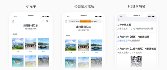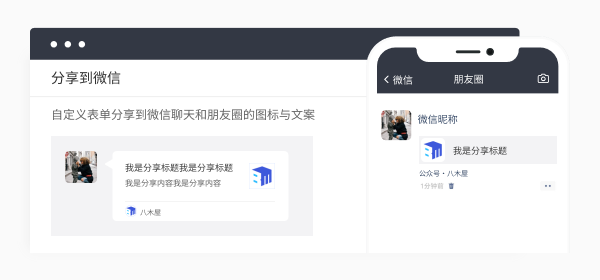 自定义微信分享功能,上传您的公司或业务LOGO、标题和描述,每当您从此处生成该内容的分享卡片时,都能向用户们展现您的品牌,提升传播度